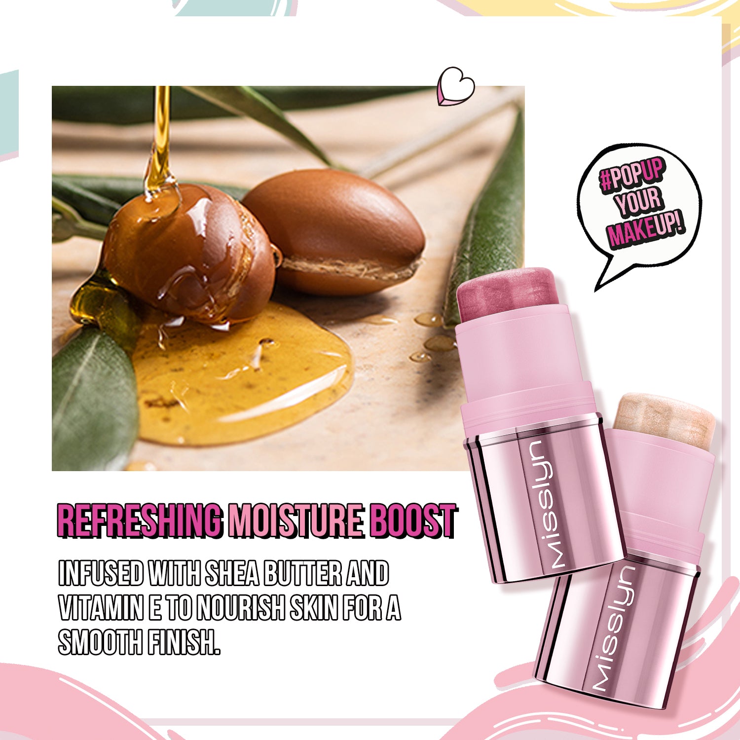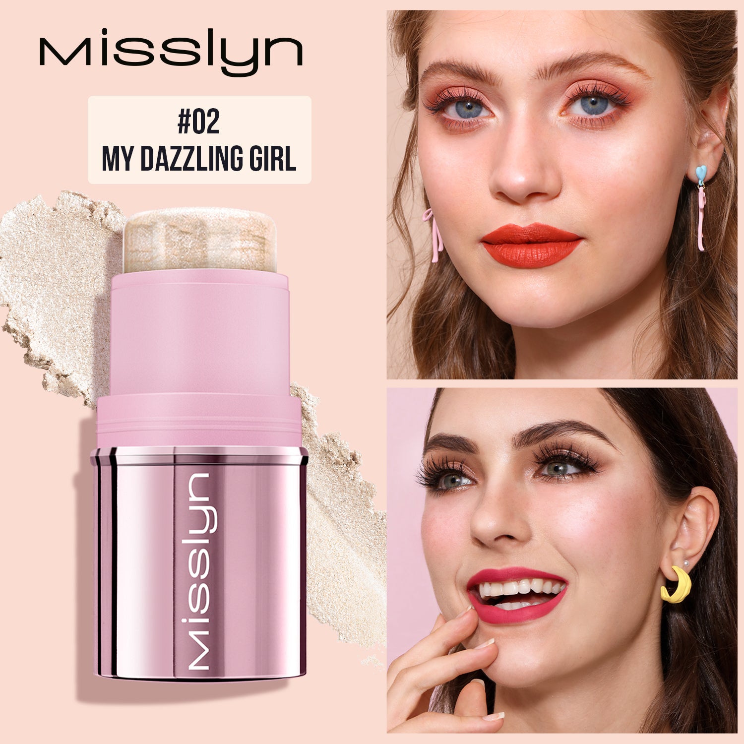 Misslyn You Glow Girl!ÊBlusher Stick & Highlighter Stick Set, Multi-use stick for eyeshadow, check, lips & Illuminating cream highlighter,Luxuriously Creamy & Blendable Color, Easy application, lightweight, creamy texture,micro-fine pearls, Buildable Cream, Long Lasting, Pigmented & Ultra Blendable Color, Natural color, Mult-use, Easily Blended, Skin loving formula, Infused with formular with Shea Butter&Sunflower Seed Wax